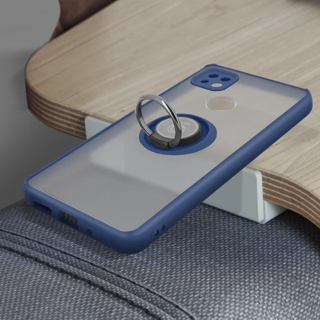Ovitek z obrocem za Xiaomi Redmi 9C - hrbtna stran z motno zašcito proti prstnim odtisom, združljivo z magnetnim stojalom - modra