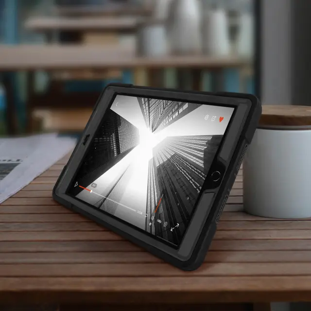 Zašcitite svoj iPad 9 2021, iPad 8 2020 in iPad 7 2019 s tem izjemno odpornim ohišjem iz dveh materialov. Prakticen, ima vrtljiv rocaj, stojalo za video podporo, odstranljiv naramni trak za izkorišcanje tablice.