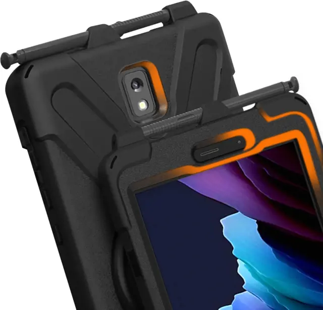 Ovitek z visoko zašcito Samsung Galaxy Tab Active 3, naramni trak z vrtljivim rocajem in stojalom - crn