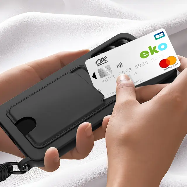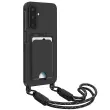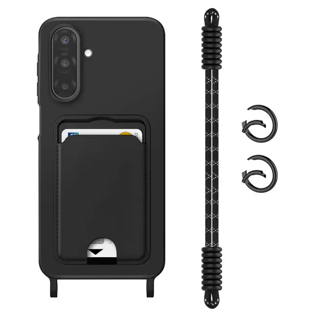 To ohišje zagotavlja popolno zaščito zaradi prožnega silikona, ki absorbira vsakodnevne udarce.. Vgrajeno držalo za kartice omogoča enostavno prenašanje pomembnih kartic brez denarnice. Izjemno trden trak pritrdi telefon in vam v vseh okoliščinah sprosti roke.. Oblika z mehkim dotikom za eleganten zaključek in udoben oprijem.