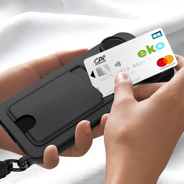 To ohišje zagotavlja popolno zaščito zaradi prožnega silikona, ki absorbira vsakodnevne udarce.. Vgrajeno držalo za kartice omogoča enostavno prenašanje pomembnih kartic brez denarnice. Izjemno trden trak pritrdi telefon in vam v vseh okoliščinah sprosti roke.. Oblika z mehkim dotikom za eleganten zaključek in udoben oprijem.