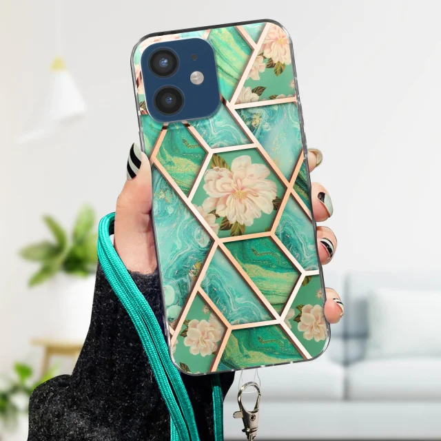 Ovitek z vrvico za iPhone 12 Mini, geometrijski vzorec - turkizna