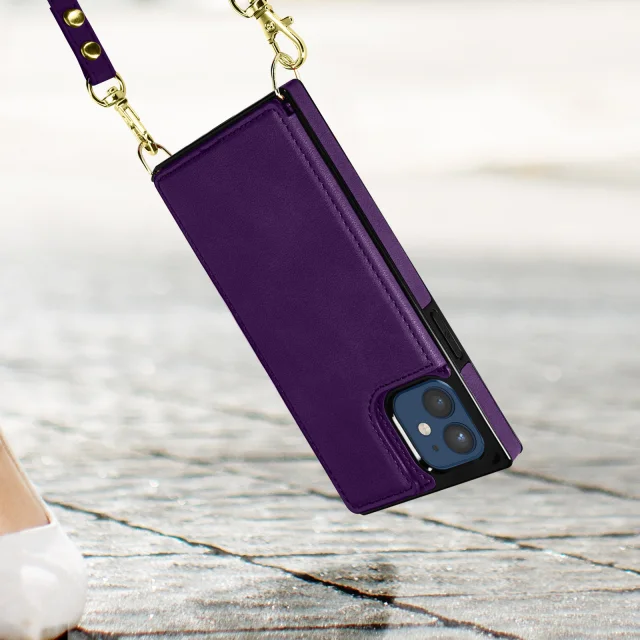 Ovitek z vrvico za iPhone 12 Mini, odporen na udarce, z varnim držalom za kartico - vijolicen