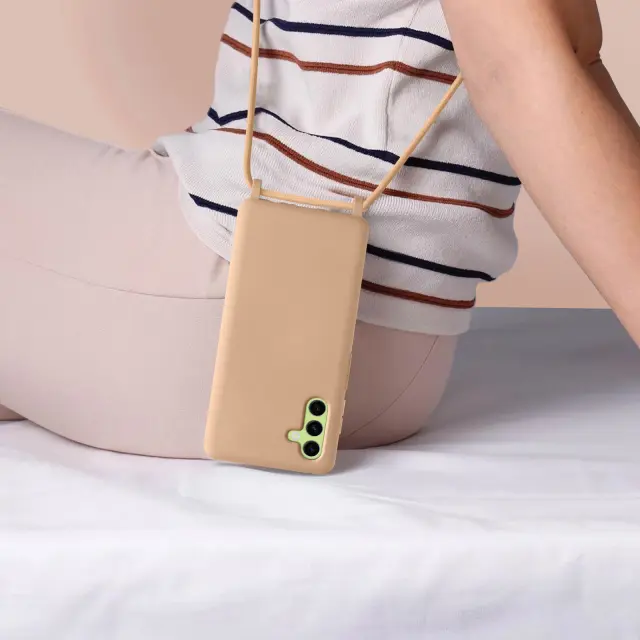 Ovitek za kabel Samsung Galaxy A54 5G, serija NeckShell. To ohišje iz polikarbonata in silikonskega gela šciti mobilni telefon pred udarci. Ima nastavljiv 80 cm pleten najlonski trak za nošenje telefona okoli vratu ali kot naramnico.