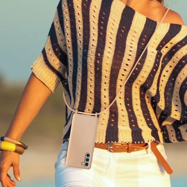 Ovitek z vrvico za Samsung S23, serija NeckShell pudrasto roza