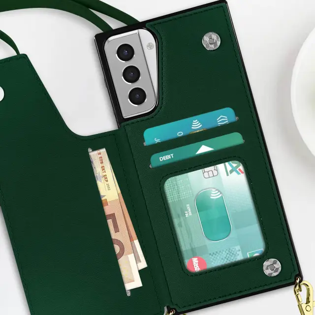 Ovitek z vrvico za Samsung Galaxy S21 Plus, odporen proti udarcem, z varnim držalom za kartico - zelen