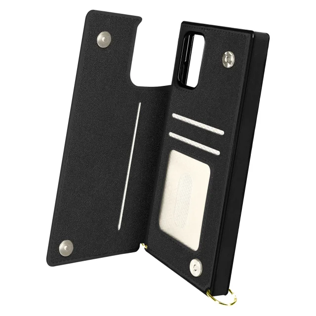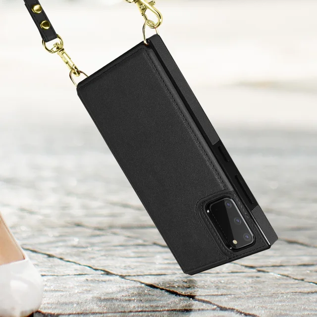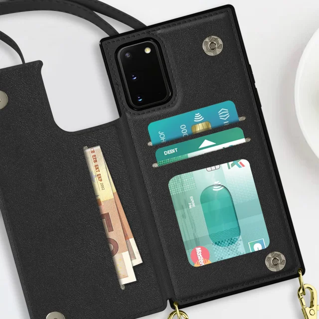 Ovitek z vrvico za Samsung Galaxy S20, odporen proti udarcem, z varnim držalom za kartico - crn