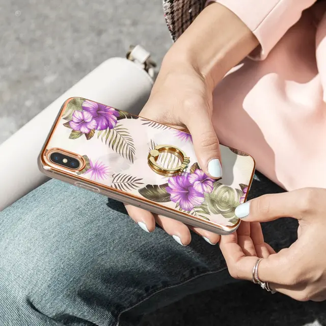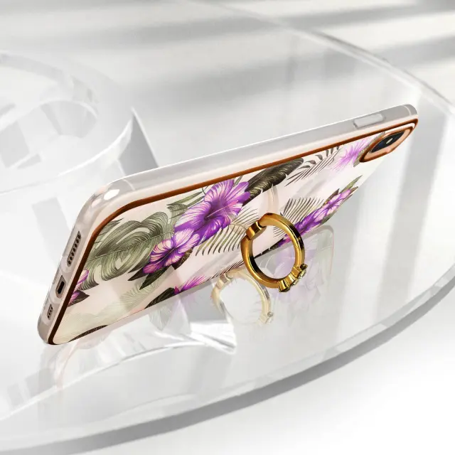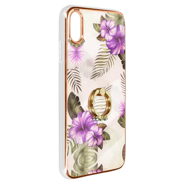 Ovitek z vzorcem vijolicnih rož za iPhone XS Max, podporni prstan