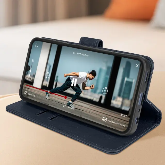 Ovitek za denarnico in video držalo za Samsung Galaxy A25, Modra noč