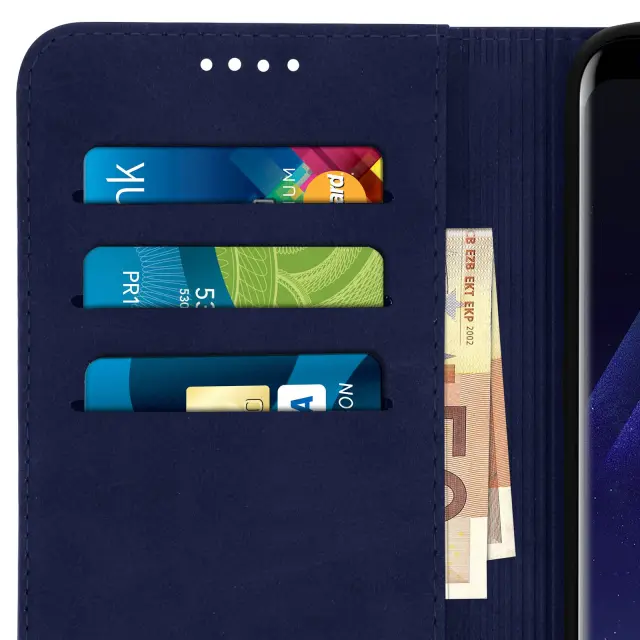 Ovitek za denarnico v videzu staranega usnja, funkcija podpore za video - polnocno modra str. Samsung Galaxy S8
