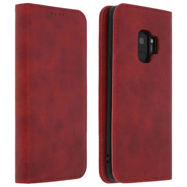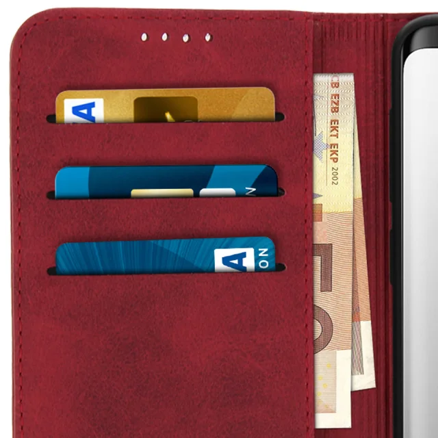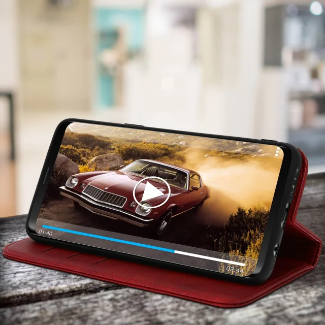 Ovitek za denarnico v videzu postaranega usnja, funkcija video podpore - rdeca str. Samsung Galaxy S9