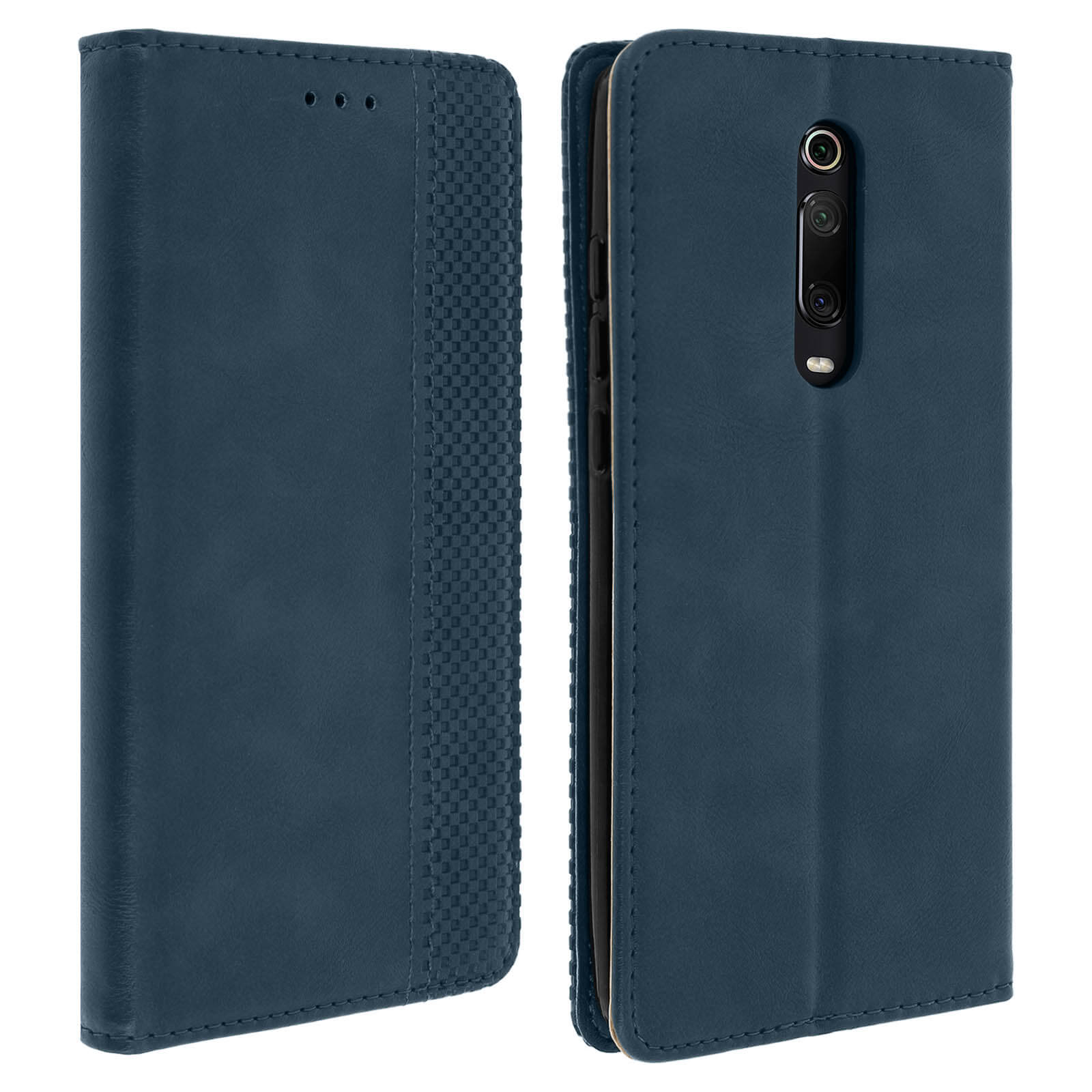 Ovitek za denarnico, posebej oblikovan za Xiaomi Mi 9T, kolekcija Vintage. Popolnoma ščiti vaš pametni telefon pred vsakodnevnimi udarci in praskami. Oblazinjenje iz eko usnja s postaranim videzom in reliefnim karo vzorcem. Po meri oblikovana zaščitna prevleka iz silikonskega gela.