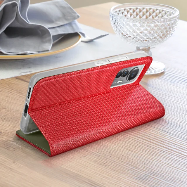 Ovitek za denarnico Xiaomi 12 Lite z magnetnim preklopom in držalom za kartice, rdec