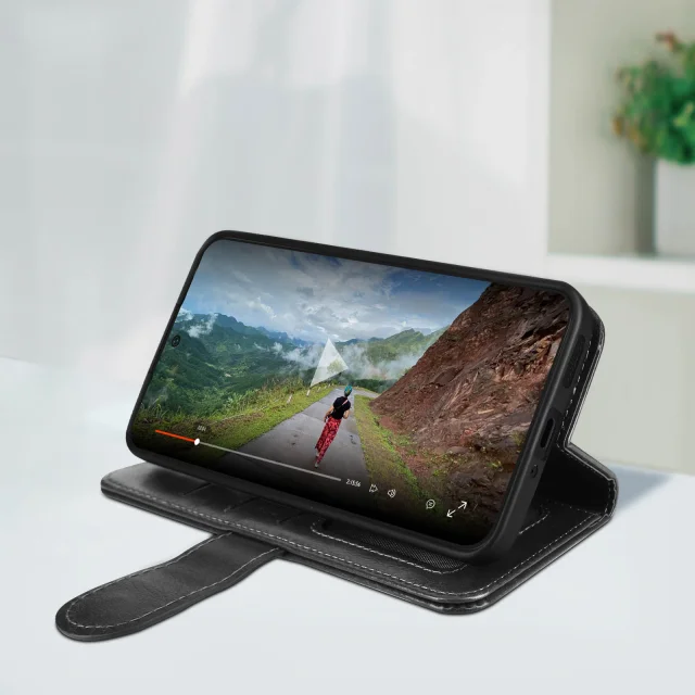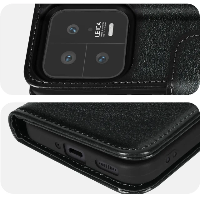 Ovitek za denarnico Xiaomi 13 s stojalom za video in magnetnim jezickom - crn