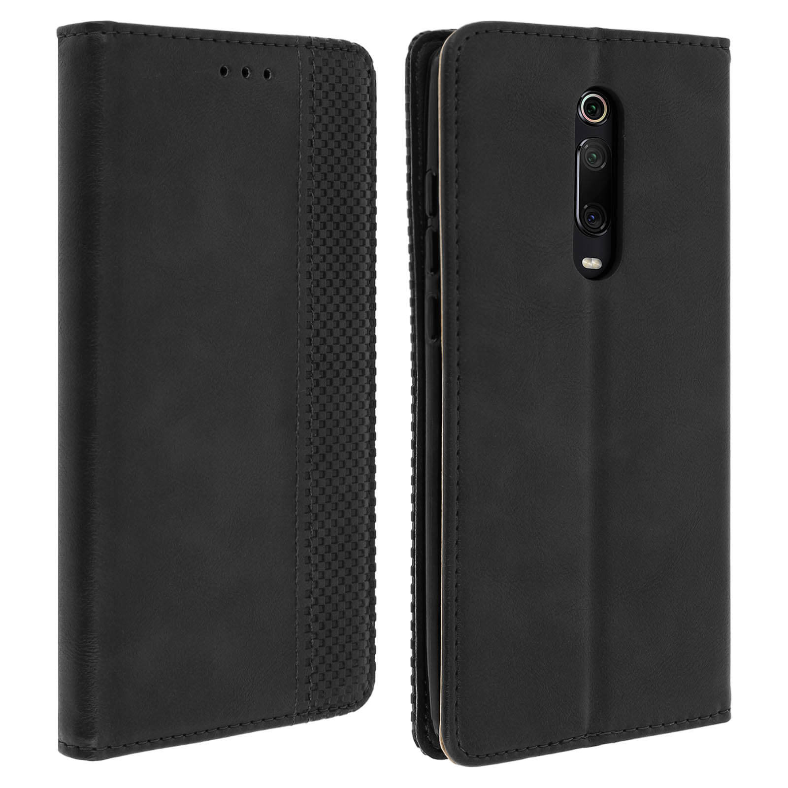 Ovitek za denarnico, posebej oblikovan za Xiaomi Mi 9T, kolekcija Vintage. Popolnoma ščiti vaš pametni telefon pred vsakodnevnimi udarci in praskami. Oblazinjenje iz eko usnja s postaranim videzom in reliefnim karo vzorcem. Po meri oblikovana zaščitna prevleka iz silikonskega gela.