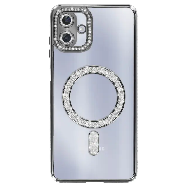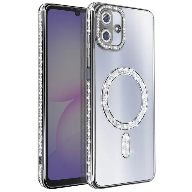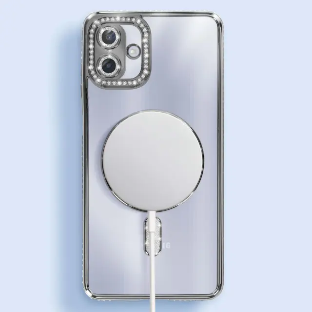 Ovitek za Galaxy A07, združljiv z MagSafe, z okrasnim obodom iz strasa, Črna