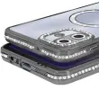 Prefinjen rob s kristalčki za elegantno, sijočo lupino. Združljivost s sistemom MagSafe zaradi vgrajenega magnetnega obroča. Zanesljiva zaščita pred praskami, udarci in manjšimi padci. Ojačan blok kamere za optimalno zaščito objektiva.