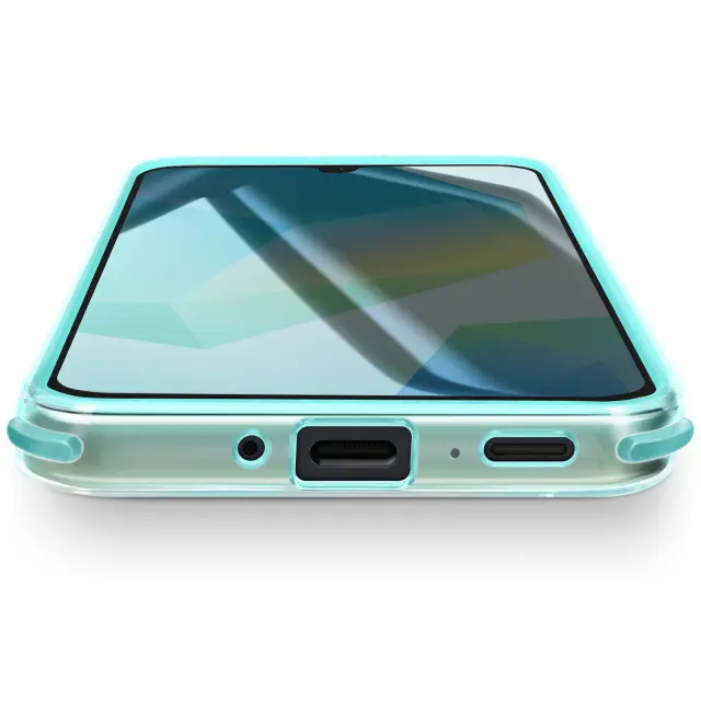 Struktura iz dveh materialov, mehkega silikona in togega polikarbonata, za trajno zaščito pred udarci in praskami. Ojačani vogali so posebej zasnovani tako, da absorbirajo udarce in zmanjšajo tveganje v primeru padca.. Teksturirane nedrseče oblike za varen in udoben oprijem pri vsakodnevni uporabi. Dvignjeni robovi za zaščito zaslona in kamere.