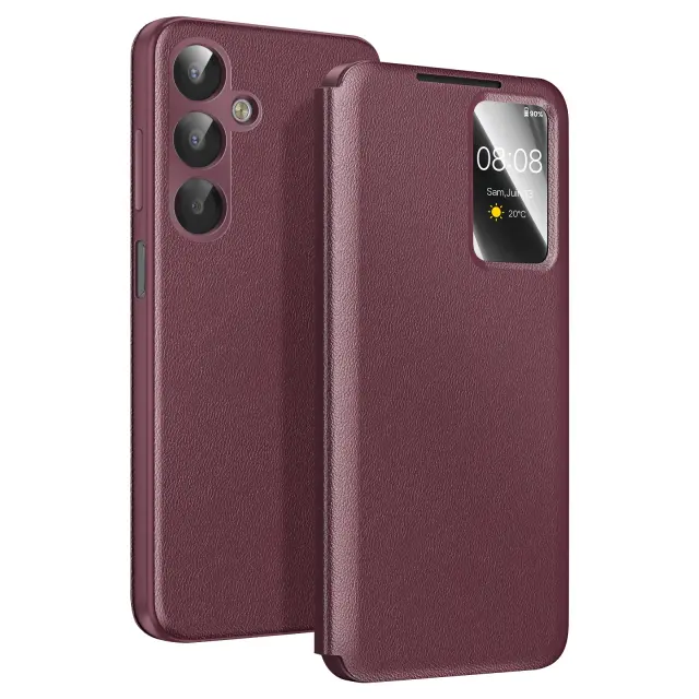 Ovitek za Galaxy A17 z oknom Smart View in držalom za kartice, Bordeaux