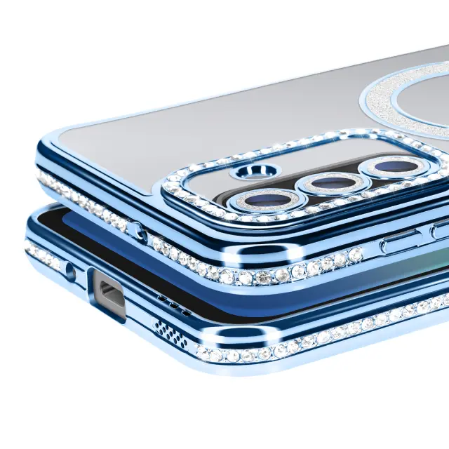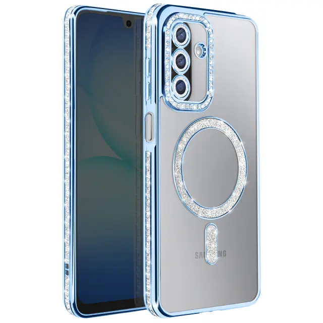 Ovitek za Galaxy A17, združljiv z MagSafe, z okrasnim obodom iz strasa, Modra