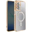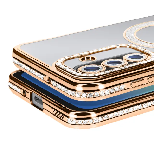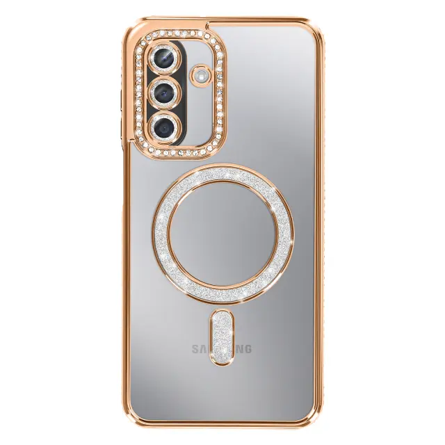 Ovitek za Galaxy A17, združljiv z MagSafe, z okrasnim obodom iz strasa, Zlata