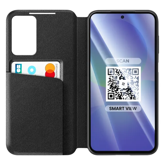 Ovitek za Galaxy A37 z oknom Smart View in držalom za kartice, Črna