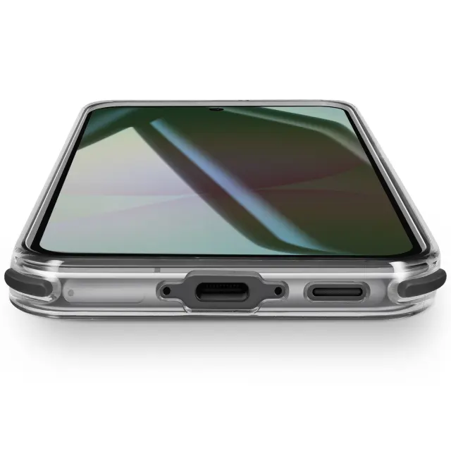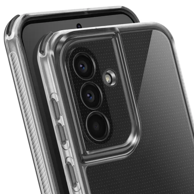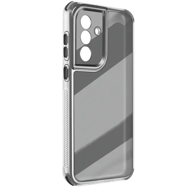 Struktura iz dveh materialov, mehkega silikona in togega polikarbonata, za trajno zaščito pred udarci in praskami. Ojačani vogali so posebej zasnovani tako, da absorbirajo udarce in zmanjšajo tveganje v primeru padca.. Teksturirane nedrseče oblike za varen in udoben oprijem pri vsakodnevni uporabi. Dvignjeni robovi za zaščito zaslona in kamere.
