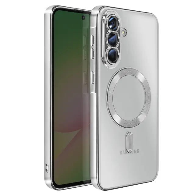 Ovitek za Galaxy A56, združljiv z MagSafe, s kromiranim robom, Srebrna