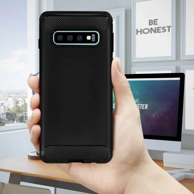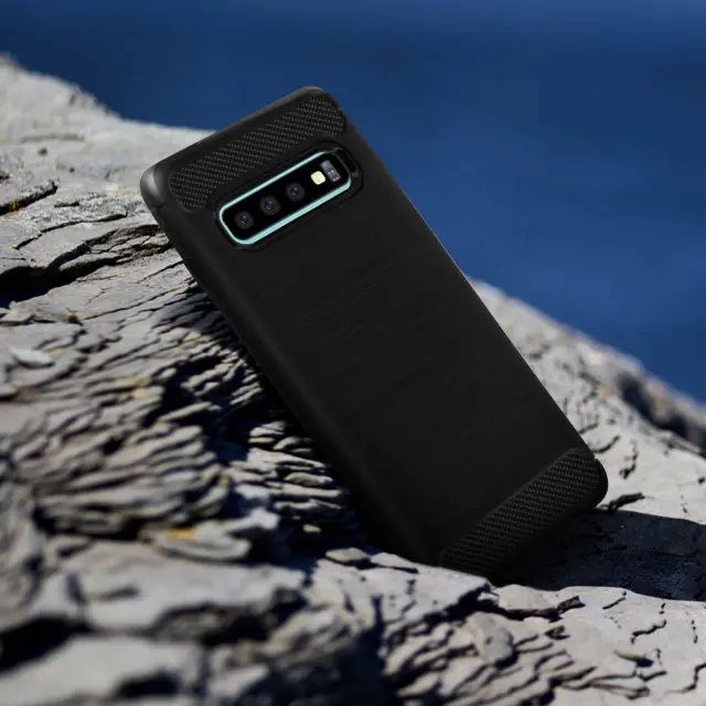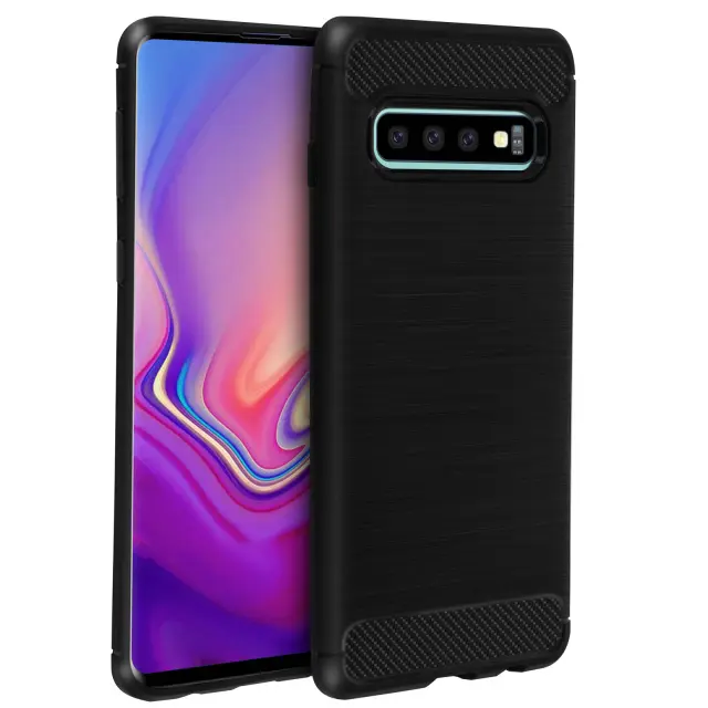 Ovitek za Galaxy S10 Plus Silikonski gel s karbonsko prevleko, Črna
