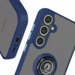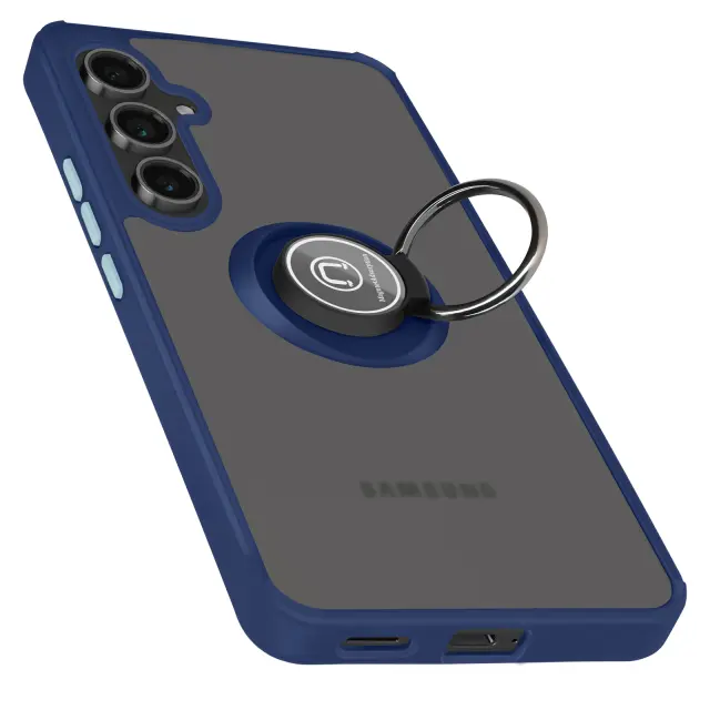 To ohišje za Galaxy S24 FE ima trdno hrbtno stran iz matiranega polikarbonata z mat površino, ki je odporna na praske in sledi.. Mat polnočno modri okvir TPU absorbira udarce na vogalih in trdno drži pametni telefon na mestu.. Kovinski vrtljivi obroč se vrti za 360° in napravo stabilizira v vodoravnem položaju za gledanje ali video klice.. Zaradi feromagnetnega vložka v obroču je ohišje združljivo z magnetnimi nosilci za avtomobile..