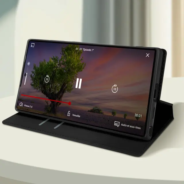 Ovitek za Galaxy S24 Ultra Card Holder Video Support Magnetic Flip, Črna