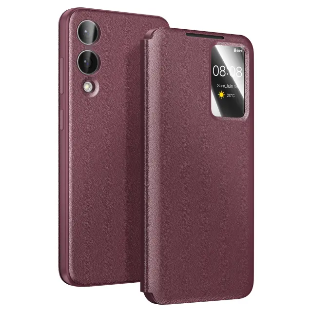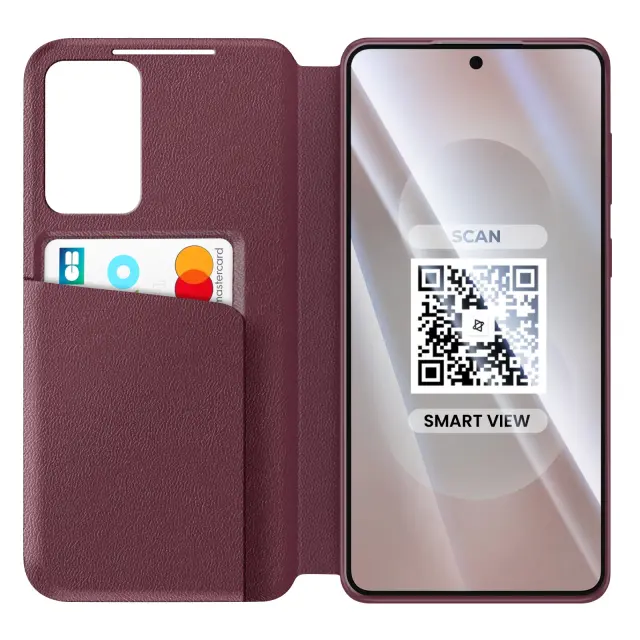 Ovitek za Galaxy S25 Edge z oknom Smart View in držalom za kartice, Bordeaux