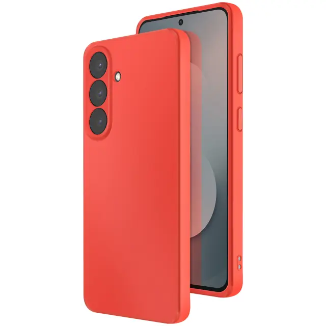 Ta rdeča hitra prevleka za Galaxy S25 FE zaradi poltrdnega silikona absorbira blage udarce.. Matiran premaz mehkega dotika zagotavlja prijeten občutek in preprečuje nenameren zdrs.. Notranja obloga iz mikrovlaken preprečuje mikro praske na hrbtni strani pametnega telefona. Dvignjeni robovi ščitijo fotografsko enoto in zaslon pred neposrednimi udarci.
