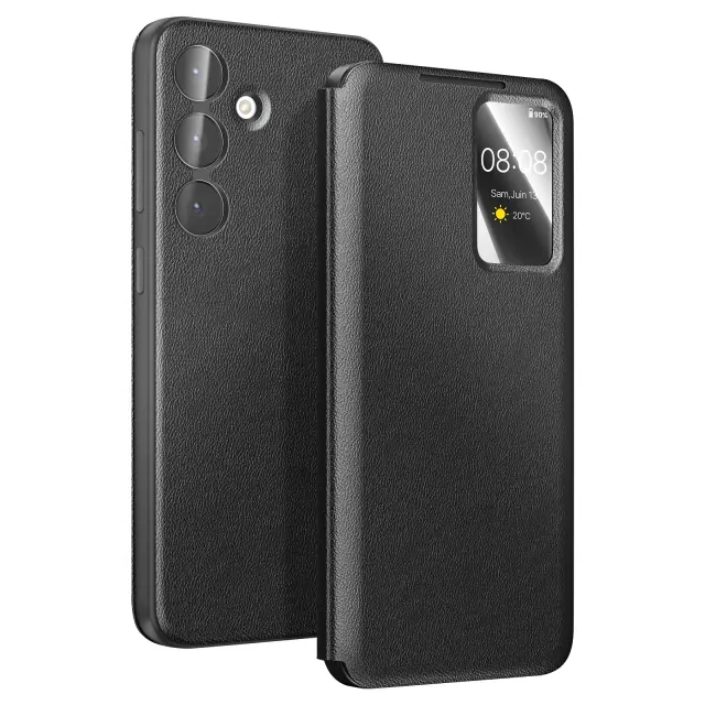 Ovitek za Galaxy S25 FE z oknom Smart View in držalom za kartice, Črna