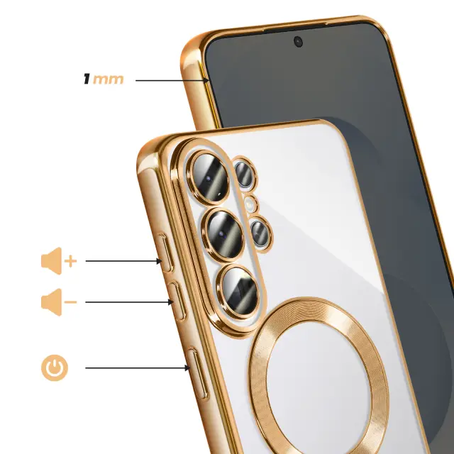 Ovitek za Galaxy S26 Ultra, združljiv z MagSafe, s kromiranim robom, Zlata