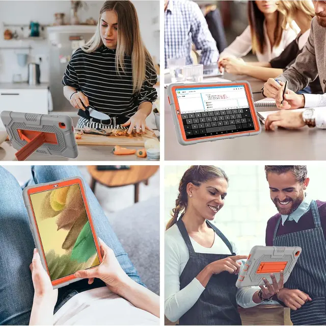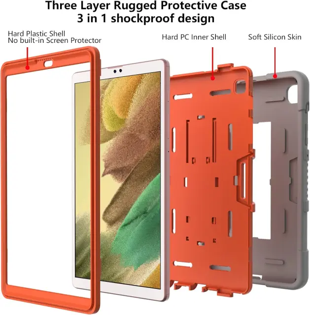 Ta izjemen ovitek združuje trpežnost, funkcionalnost in slog, kar omogoča varno uporabo vaše tablice v različnih situacijah. Zasnovan je za maksimalno zaščito naprave in je izdelan iz zelo močnih materialov, kot sta silikon in plastika. Tridelna oklepljena konstrukcija učinkovito ščiti tablico pred poškodbami, kot so padci, udarci ali praske, ter zagotavlja popolno varnost pri vsakodnevni uporabi. Kljub svoji robustni zgradbi ovitek ohranja nemoten dostop do vseh vrat, kar omogoča priročno uporabo naprave brez potrebe po odstranjevanju ohišja.