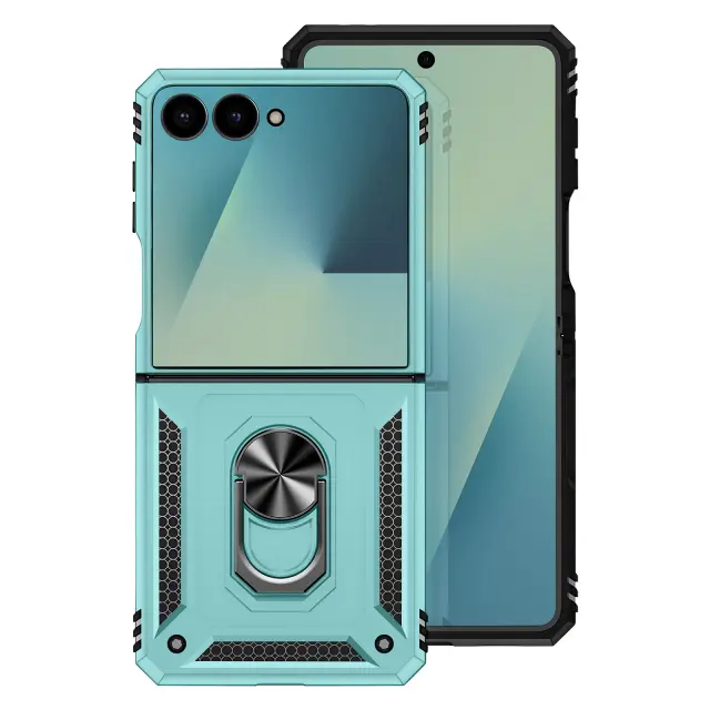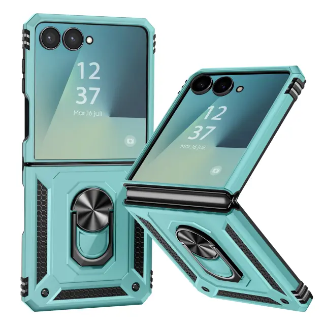 Ovitek za Galaxy Z Flip 7 z vrtljivim obročem in funkcijo stojala, Turkizna