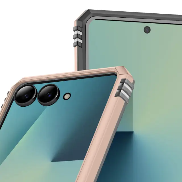 Obroč, ki se vrti za 360°, se spremeni v stojalo za lažje gledanje. Na udarce odporna lupina iz bimateriala za optimalno absorpcijo udarcev. Ojačani vogali za večjo varnost v primeru padca. Teksturiran stranski ročaj za stabilen oprijem.