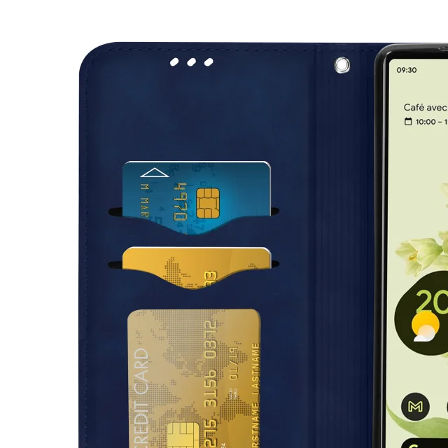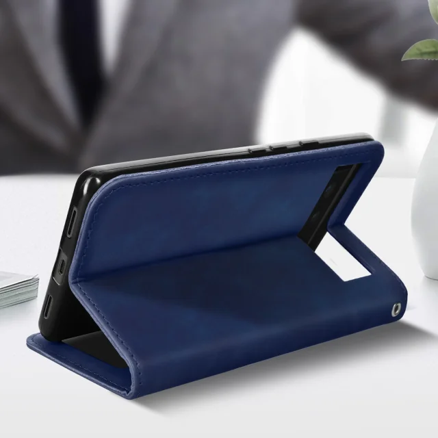 Moder ovitek Google Pixel 6a za zašcito mobilnega telefona v celoti. Opremljen je z dvema držaloma za kartice in funkcijo video podpore. Prevleka iz imitacije usnja z ucinkom staranja vam omogoca prijeten oprijem. Magnetni ventil.