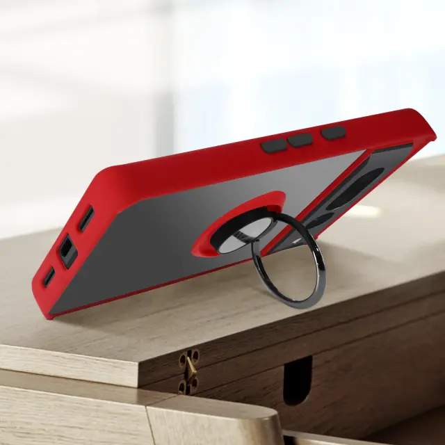 Rdeca torbica za Google Pixel 7 Pro iz dveh materialov šciti vaš telefon pred udarci in praskami. Zašcita z zadrževalnim obrocem, ki se lahko uporablja kot video nosilec in združljiv z magnetnim nosilcem (ni vkljucen). Mat zakljucek proti prstnim odtisom.