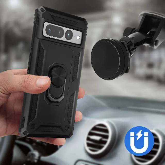 Ovitek za Google Pixel 7 Pro, izjemno trden z držalom za obrocek - crn