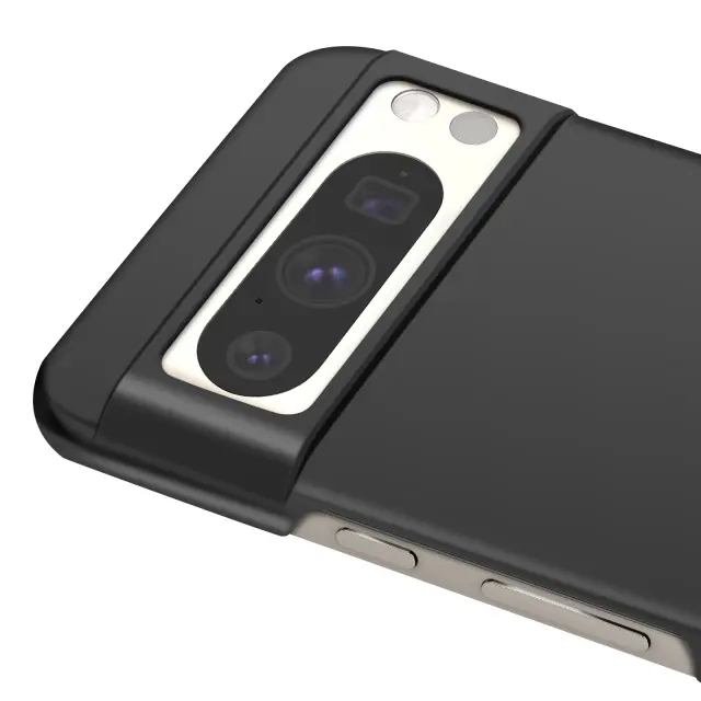 Google Pixel 8 Pro Black zašcita. Trda lupina, odporna na udarce in praske. Dvignjen rob kamere za vecjo zašcito pred padci. Ovitek za Pixel 8 Pro Tanek in prilagojen dizajn za prijeten oprijem. Ovitek za Google Pixel proti prstnim odtisom.