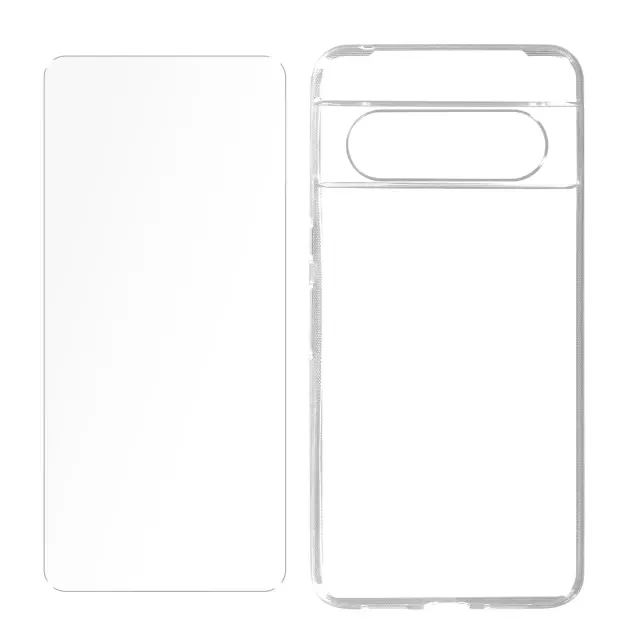 Ovitek za Google Pixel 8 silikonski gel in 9H kaljeno steklo, Prozorno