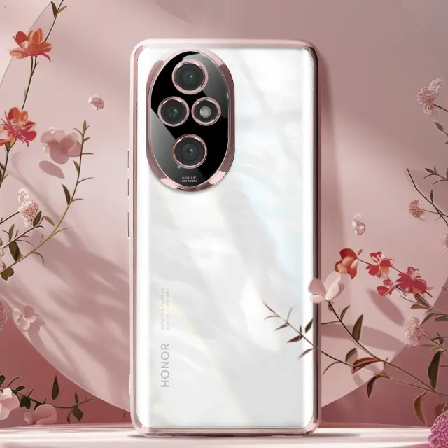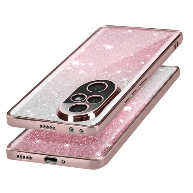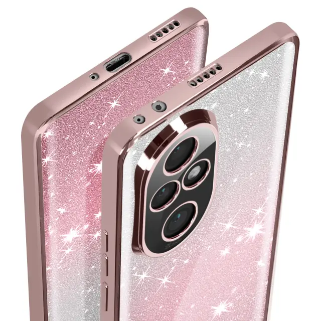 Ovitek za Honor 200 Pro Glitter Pattern Camera Protected, Šampanjec roza