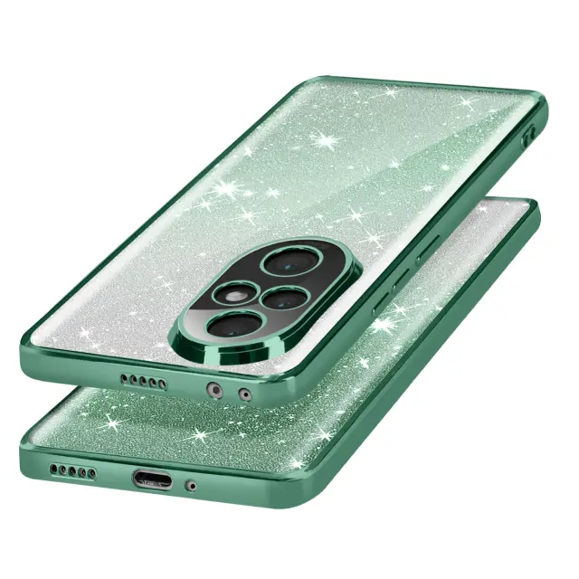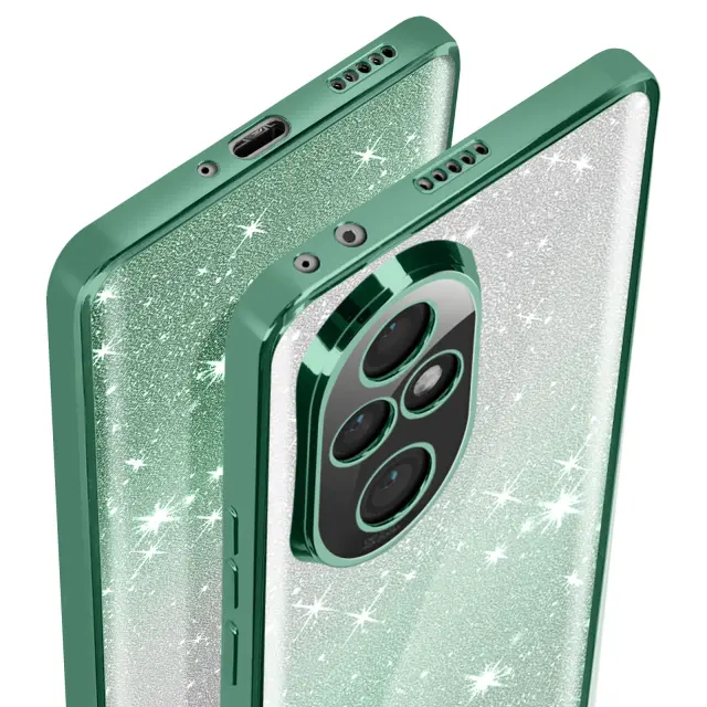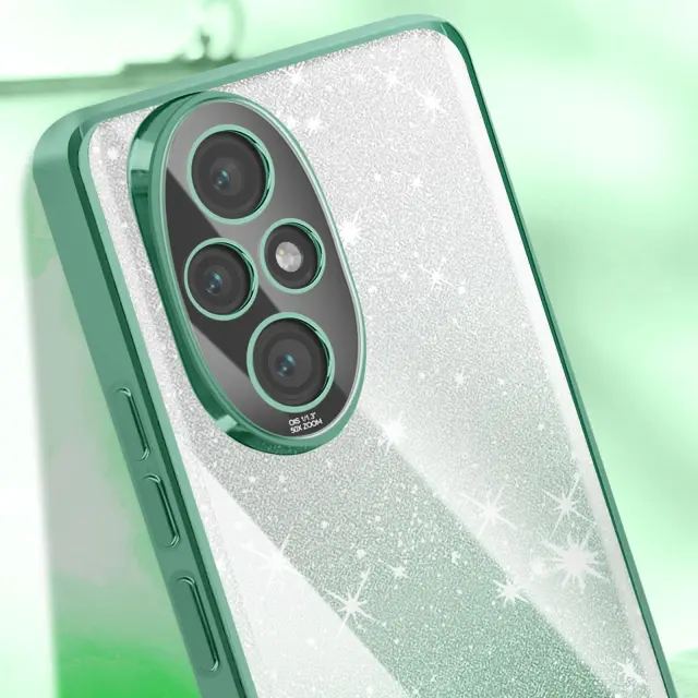 Ovitek za Honor 200 Pro Glitter Pattern Camera Protected, Zelena