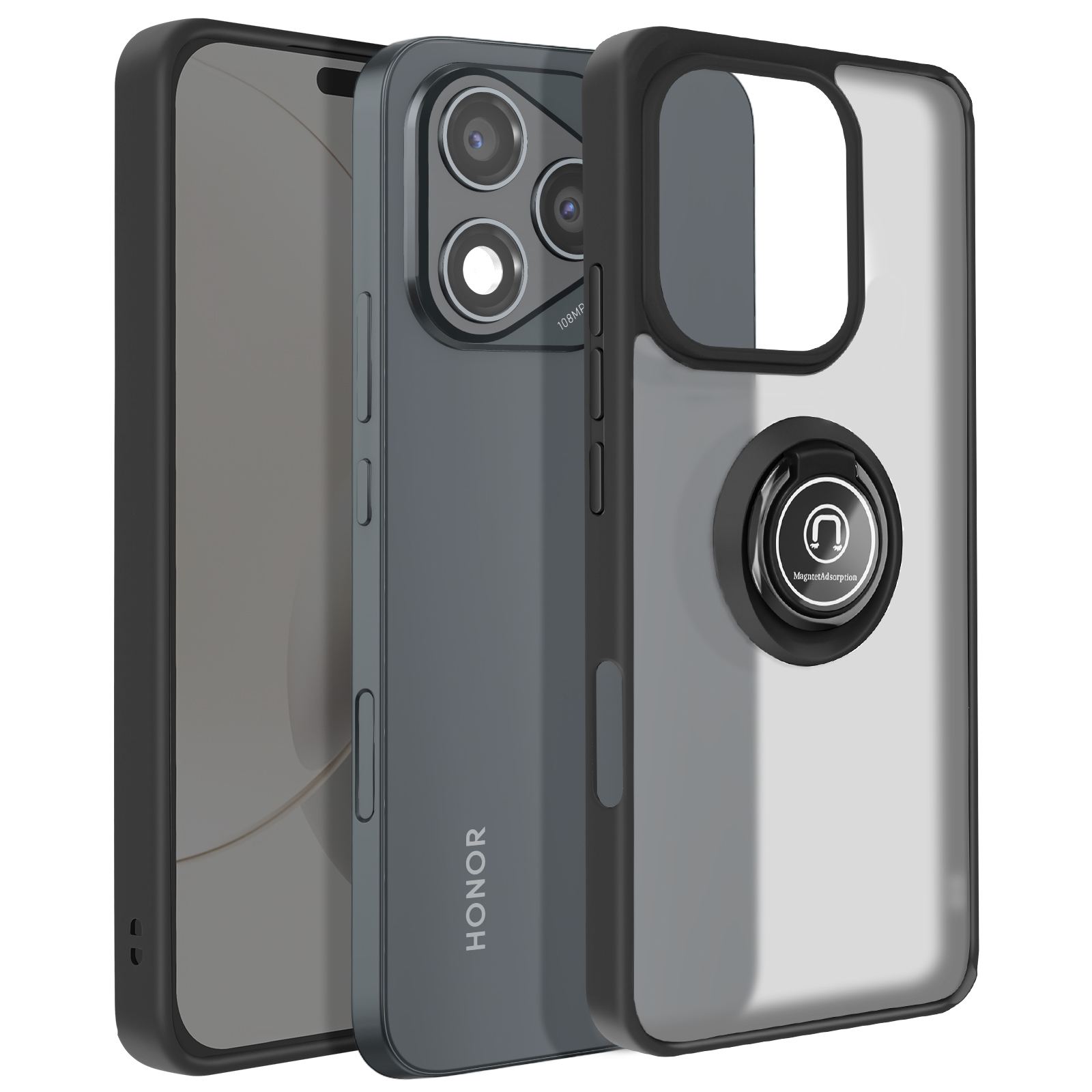 Elegantna zaščitna lupina z matirano prozorno hrbtno stranjo in črno obrobo za vaš Honor 400 Lite. Večnamenski obroč na hrbtni strani za varen oprijem v vseh okoliščinah. Obroč spremenite v praktično vodoravno ali navpično stojalo, tako da lahko s telefonom uživate, kjer koli ste.. Optimalna zaščita pred nevarnostmi vsakdanjega življenja: udarci, padci in praske ne bodo več vplivali na vaš telefon..