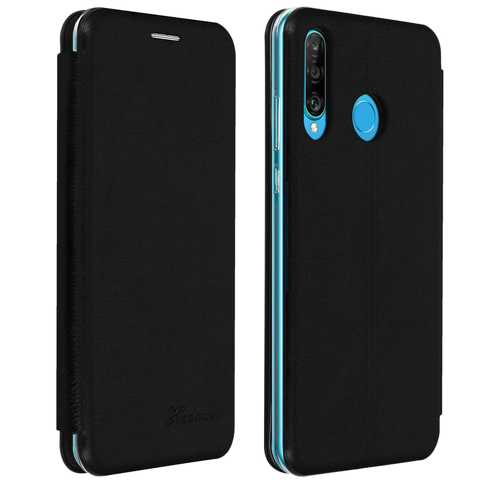 Ovitek za Huawei P30 Lite / P30 Lite XL iz umetnega usnja, držalo za kartice in stojalo za video, zbirka Haja - crna