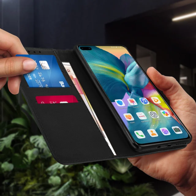Ovitek za Huawei P40, držalo za kartice in stojalo za video, popolna zašcita - crna