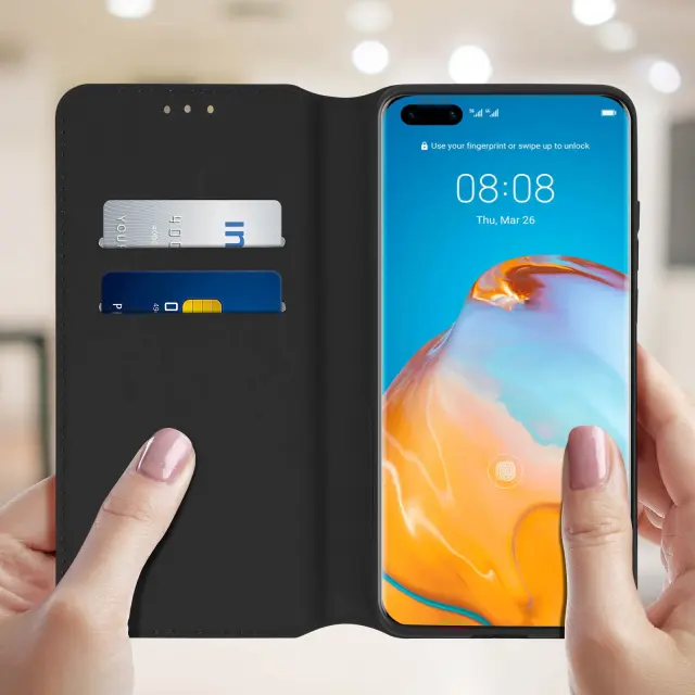 Vsestranska zaščita, posebej zasnovana za Huawei P40 Pro. Učinkovito ščiti vaš pametni telefon pred vsakodnevnimi udarci in praskami. Trezen in eleganten dizajn z gladkim zaključkom iz ekološkega usnja. Po meri oblikovana zaščitna prevleka iz silikonskega gela.