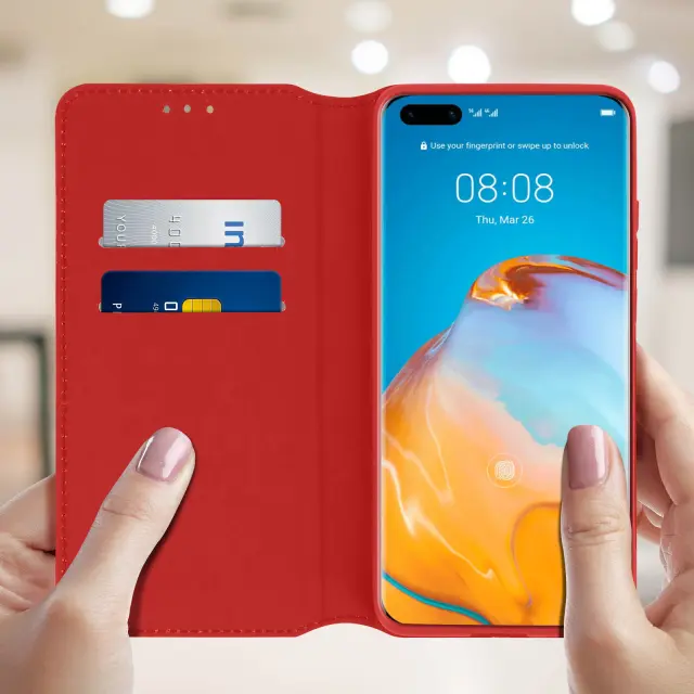 Vsestranska zaščita, posebej zasnovana za Huawei P40 Pro. Učinkovito ščiti vaš pametni telefon pred vsakodnevnimi udarci in praskami. Trezen in eleganten dizajn z gladkim zaključkom iz ekološkega usnja. Po meri oblikovana zaščitna prevleka iz silikonskega gela.